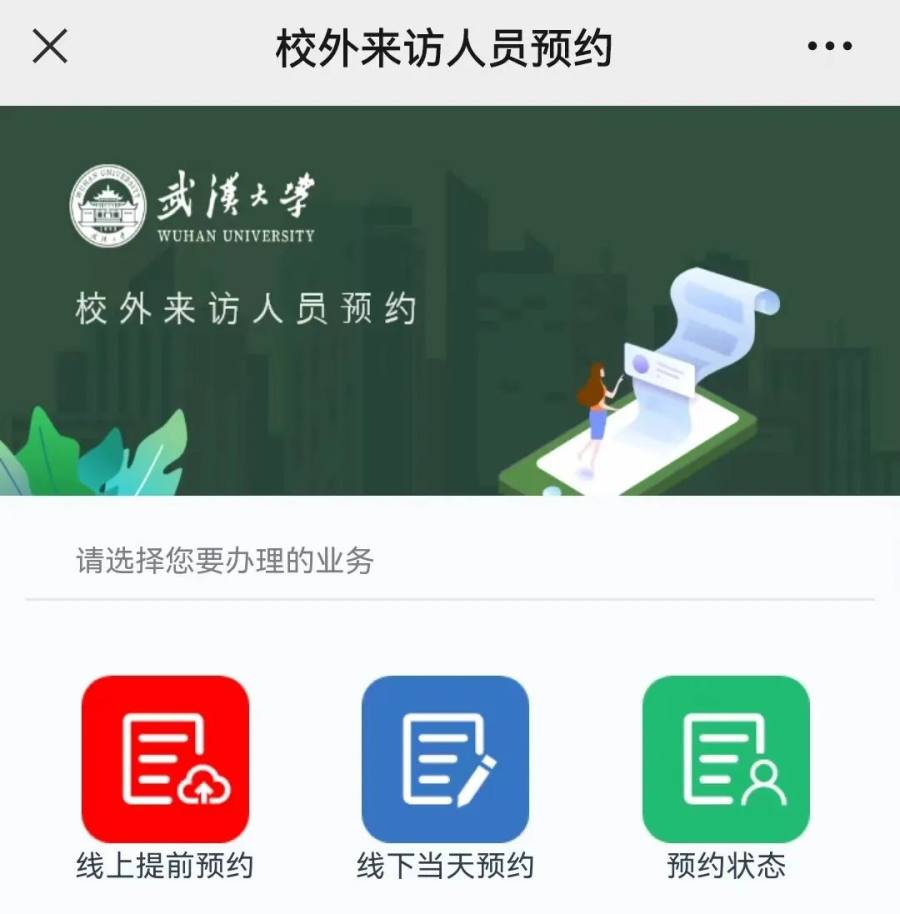 武汉大学预约入校参观通道从2023年7月8日起试运行,社会公众最多可提前5天通过线上预约的通道填写入校者的相关信息(姓名、身份证号、手机号等)进行线上预约,或线上下当天预约。