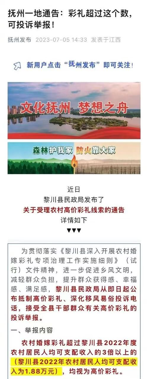 彩礼超6万可举报?江西一地回应:通告已撤,考虑不周