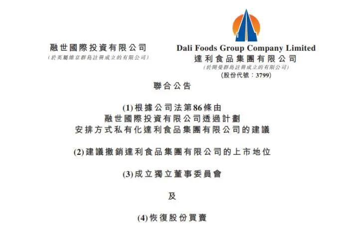 达利食品拟退市近日,停牌近一周的达利食品复牌并公告称,公司拟启动私有化退市。公告显示,达利食品及要约人融世国际联合公布,融世国际要求董事会向计划股东提出建议,将达利食品公司拟议私有化。计划生效后,要约人将持有已发行股份约96.11%,受托人将持有已发行股份约3.89%,并将撤回其股份在联交所的上市地位。 公告中的信息同时显示,要约人融世国际的唯一董事为许世辉。于公告日期,融世国际的全部已发行股本由许世辉全资拥有,而许世辉亦是达利食品的创始人及董事长。对于建议私有化的原因,公告认为,由于股价低迷,达利食品已经丧失维持上市地位的优势,股权集资能力有限。公司股份一直在相对较低的价格区间交易,成交量有限,这不符合公司在业内的地位,亦无向市场传达其真实价值。从达利食品的股价表现来看,自2018年1月出现峰值6.86港元/股后,呈现逐渐下跌的趋势,长期处于每股5港元以下,后更于今年6月1日跌至2.43港元/股。同时公告认为,股价表现不理想也对公司的业务发展造成不利影响。此外要约人表示,若建议成功实施,集团作为私人企业可得到更大灵活性,以作出更加注重推进必要业务转型的战略决策。公告另外显示,假设于记录日期前不会进一步发行股份,及考虑到许世辉股份注销代价及存续安排,建议应付的最高现金代价约为57.07亿港元。达利食品2022年的财报显示,其全年实现营收199.57亿元,净利润29.90亿元。许世辉为何愿意付出全年净利润近两倍的代价实现私有化?或许就要从达利食品提到的“业内的地位”说起。官网显示,达利食品集团成立于1989年,坐落于福建泉州惠安县,这也是创始人许世辉的家乡。像那个年代的很多年轻人一样,许世辉早早放弃了学业出门打工养家,后进入到一家食品加工厂做着足以糊口的工作。 据媒体报道,当时许世辉有一位很爱吃零食的室友,即使吃完饭也要花钱另外买零食,面对许世辉的疑惑他表示自己只是单纯地喜欢吃零食。事实证明,即使在30多年后,这一“吃零食并不是因为饿,而是因为馋”的观念,在零食爱好者中也依然很适用。 而在30多年前,这一想法却激起了许世辉的心里的火花。时代发展的进程回应了他的少年雄心,尤其是在海运贸易兴盛的泉州,许世辉决定拼一把,投入全部身家建立了食品加工厂,从已经能吃饱肚子、开始考虑“吃好”的消费者身上挖到了第一桶金。 如今的达利食品,扎根食品与饮料两大赛道,旗下已有达利园、好吃点、可比克、乐虎、和其正、豆本豆、美焙辰等多个知名品牌。但如果细掘其产品则可以发现,似乎达利食品的每个当家品类,都在行业中都存在一个十分类似的竞品。 比如达利园派与好丽友派,可比克薯片与乐事、品客薯片,好吃点对标亿滋国际,和其正对标王老吉……也正因如此,这一打法被不少观点评论总结为“跟随策略”,即选择受市场欢迎的产品模仿,再推出价格更低的复制品。据媒体此前报道,来自韩国的好丽友自1990年代中期开始在国内走红,并逐步独霸市场。然而,14元一盒的价格在当时并不便宜,2002年,许世辉推出达利园蛋黄派,价格仅为好丽友的三分之二左右,成功从韩国巨头手中抢下市场。或许在蜜雪冰城、瑞幸咖啡攻占下沉市场的成功故事之前,达利食品在更早的时代已深谙低价的魅力和渠道的价值。凭借灵敏的市场嗅觉和对国民消费趋势的把握,辅以“跟随”基础上的改良和创新,达利食品很快走到了行业前列。2015年11月,达利食品在港股风光上市,成为当年全球消费品项目最大的IPO,以及港股最大的民营企业IPO。股价最高峰时,达利的市值接近千亿门槛,已成为“中国零食大王”的许世辉身价也水涨船高,并于2016年起蝉联了多年福建首富。