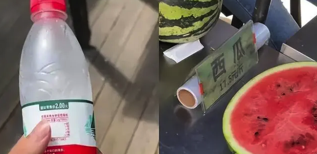 市场价2块钱的矿泉水卖10元,西瓜10多块钱一斤,乍一看这价格,确实太贵了。但如果像景区所说,商铺位于半山腰上,商品全靠人工挑运,那么卖得贵一些似乎也说得过去。