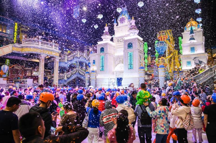 据介绍,为更加契合夏季游玩特点,冰雪世界将营业时间延长至晚上9:00,同时特别推出的冰湖露营、引进白眉企鹅、夏日飘雪、雪乡打卡等活动内容,受到了众多小朋友的喜爱。