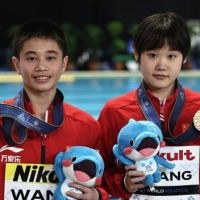 在混双十米台的较量中,中国队组合王飞龙/张家齐以339.54分夺冠。在这对组合中,19岁的张家齐是东京奥运会女子双人十米台金牌得主,14岁的王飞龙则是全队年龄最小的队员,本次是首次参加世锦赛。