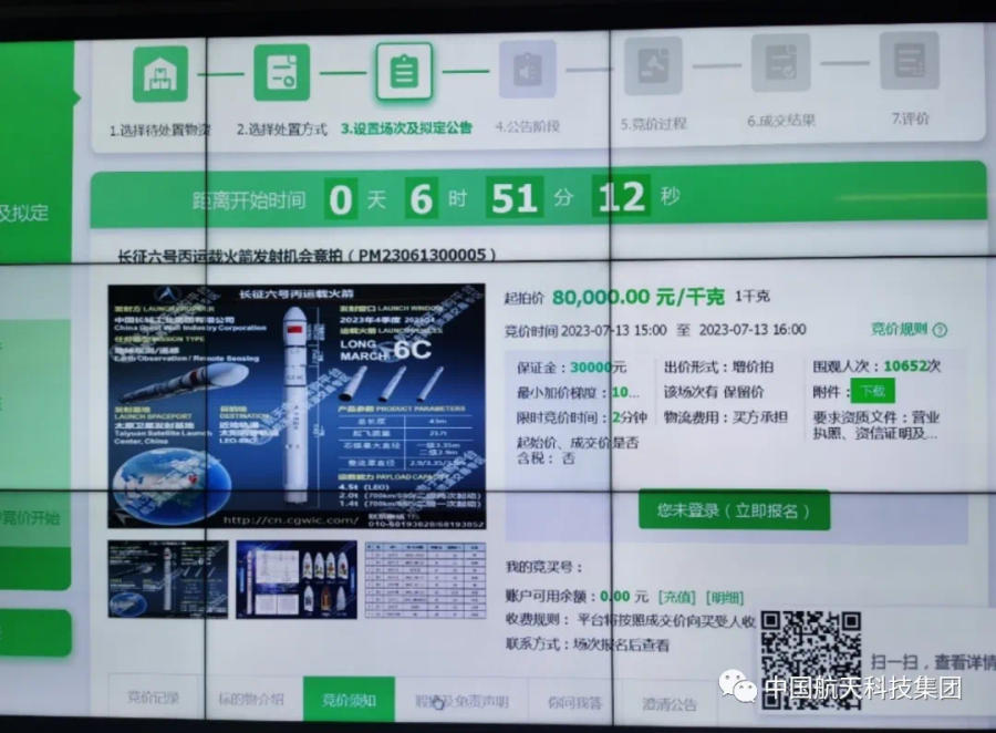 本次竞拍项目共吸引11348人次围观、13家企业报名,经过对竞买企业资信及技术性要求的评审,最终该项目由苏州一家科技企业摘得。本次发射按计划将于2023年底在太原卫星发射中心执行。