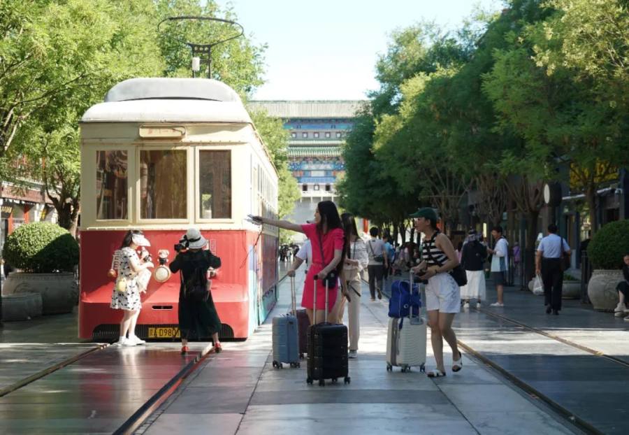 7月9日,人们在前门大街参观游览。新华社记者 任超 摄