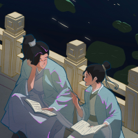 王安石被这群读书人的热情吸引,于是静静地站在一旁听讲。