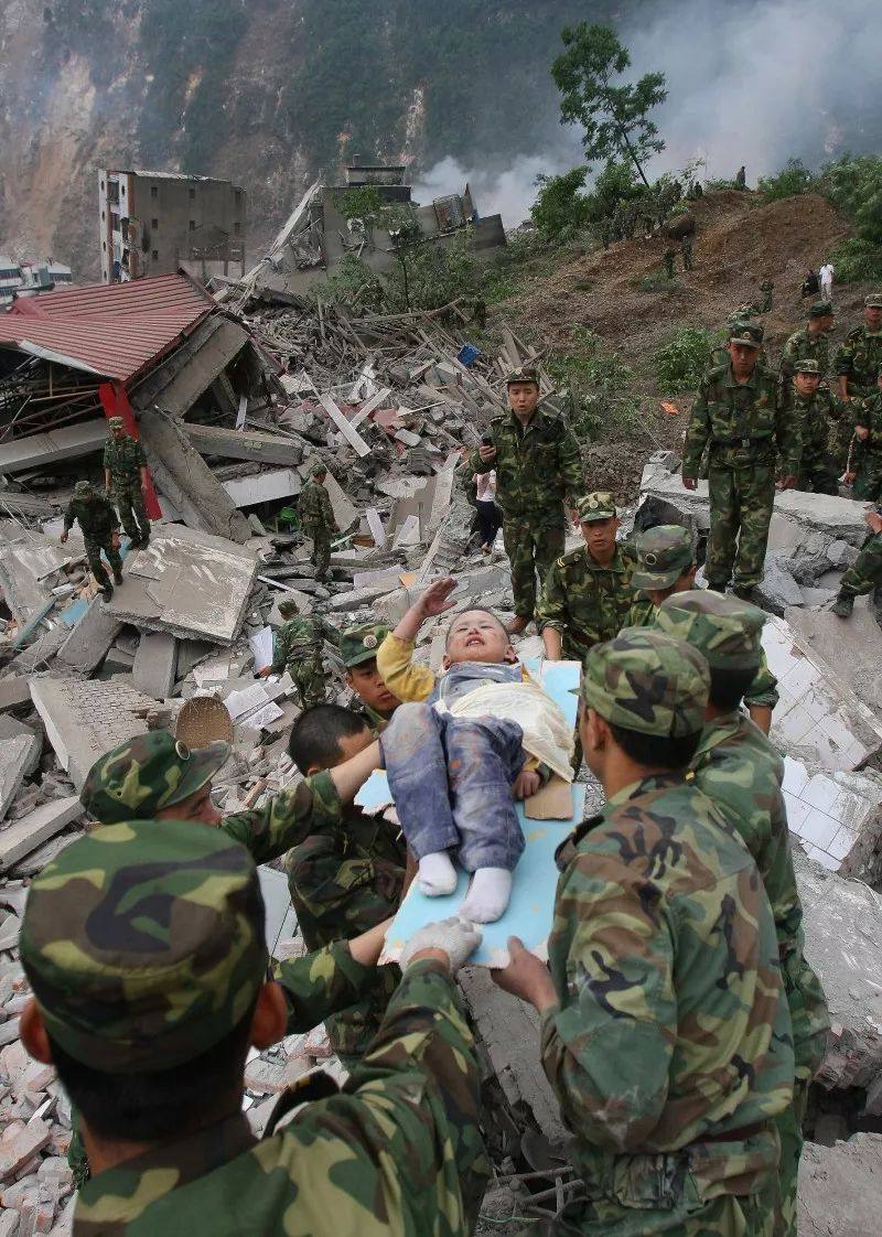 2008年5月12日,8.0级特大地震突袭四川汶川,天崩地裂,满目疮痍。当时,从地震废墟中得救的北川男孩郎铮只有3岁,他向解放军敬少先队队礼表示感谢。这一幕感动了无数人,他也因此被大家称为“敬礼娃娃”。