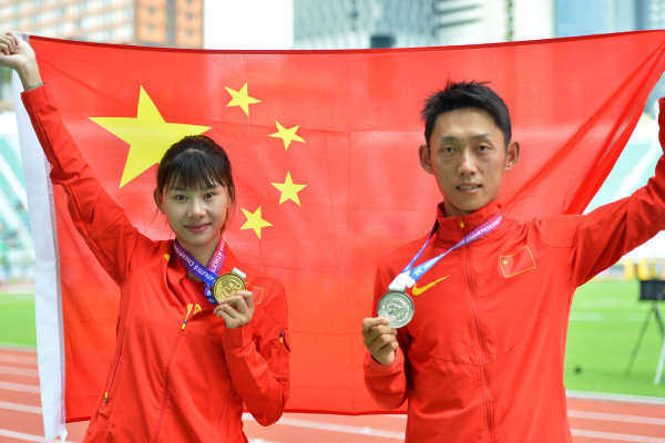 杨柳静、王凯华在2023年亚洲田径锦标赛上分获女子男子20公立竞走冠亚军