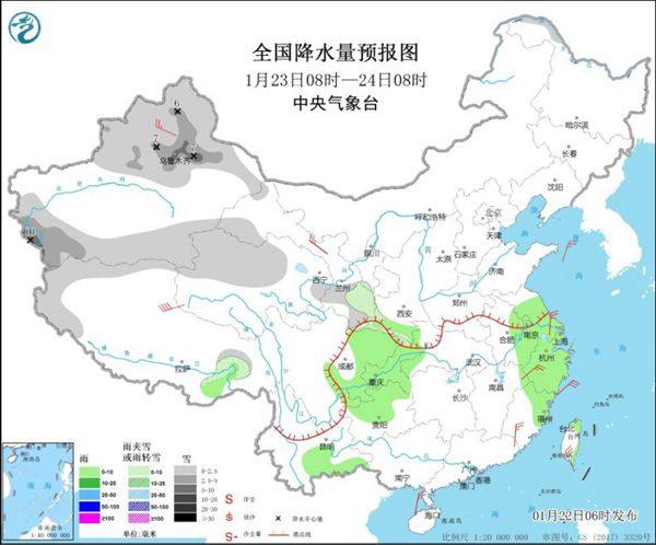 另外,今天至24日,新疆北疆和南疆西部山区有小到中雪,其中,新疆伊犁河谷、塔城、沿天山地区、石河子南部山区等地局地有大到暴雪。