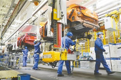 上汽集团股份有限公司乘用车郑州分公司生产车间内,工作人员正在忙碌(资料图片) 郑报全媒体记者 李新华 摄