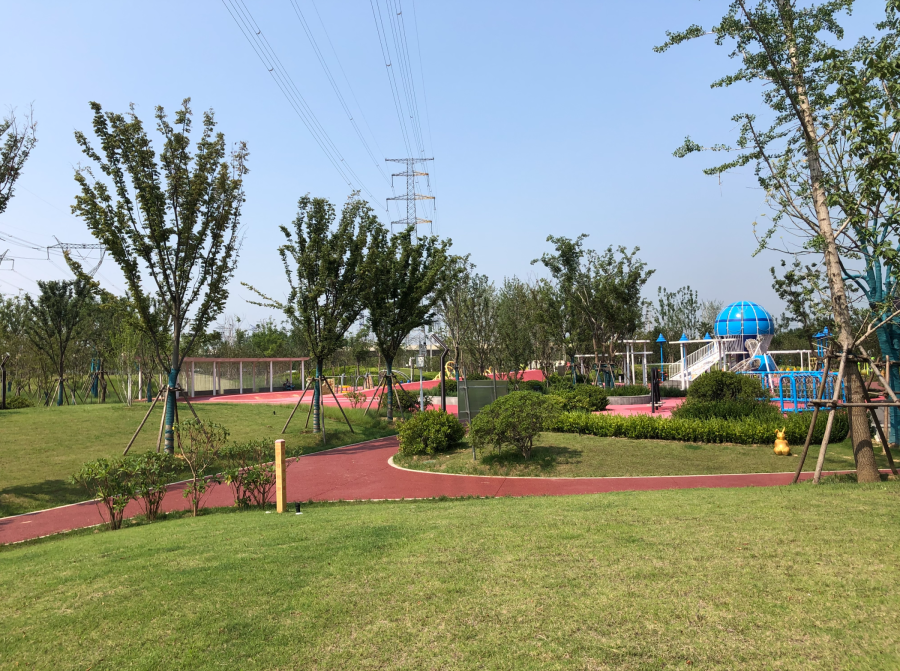 中州大道京广快速路南延东北角,占地面积5.39万平方米的管城区时代公园显露芳容,树木成行,绿草如茵,座椅、凉棚、健身步道合理布局,滑梯、沙坑、微型攀岩彰显儿童特色,成为附近居民休闲的好去处。“这个公园建成后感觉环境更美了,生活品质更高了!儿童游乐设施品种多,孩子特别喜欢,每次来都玩不够!”带5岁儿子玩滑梯的侯女士说。