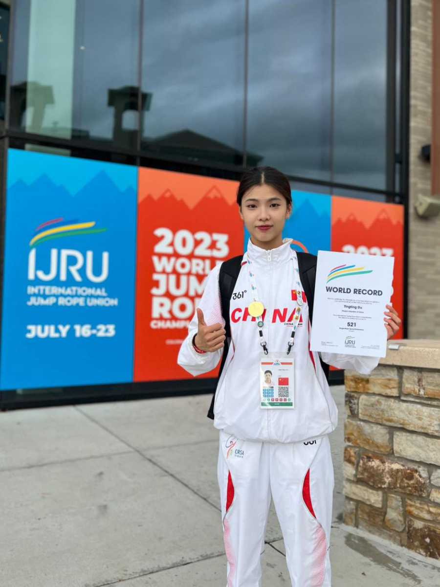 7月24日,从郑州科技学院再次传来喜讯。该校体育学院大学生杜婷婷在美国科罗拉多,当地时间7月23日,参加2023年世界跳绳锦标赛决赛中,打破自己初赛3分钟单摇跳1028次的世界纪录,最终以1042次刷新了自己的初赛纪录,再次打破世界纪录并荣获冠军。