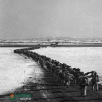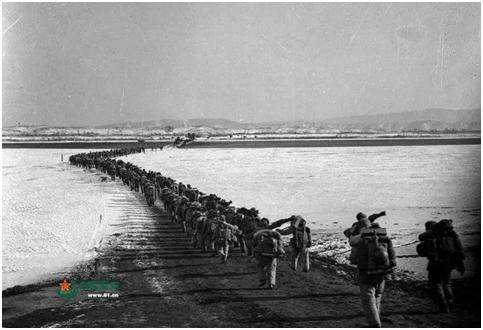 1950年冬,中国人民志愿军跨过鸭绿江。黎民摄影,图片来源:中国军网