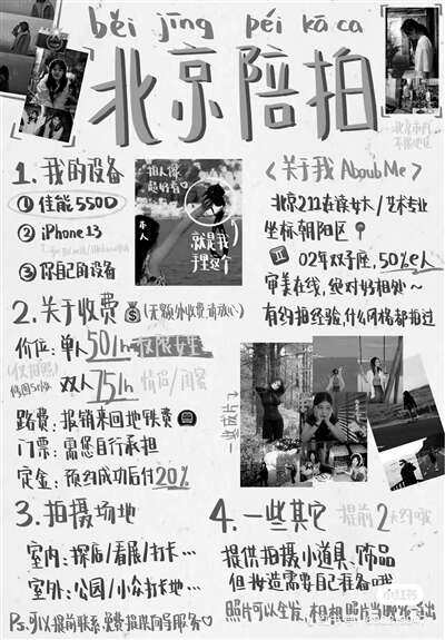 某平台用户发布的陪拍广告