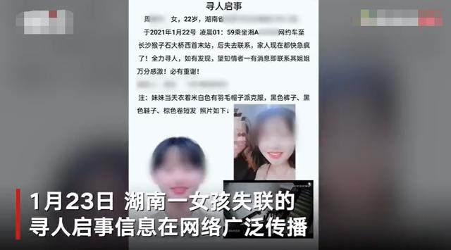 1月23日,长沙一名22岁女生下网约车后失联一事引发社会关注。