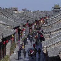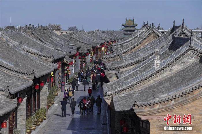 山西省晋中市,游客在有着东方华尔街的称号的平遥古城“明清街”上游玩。视觉中国供图