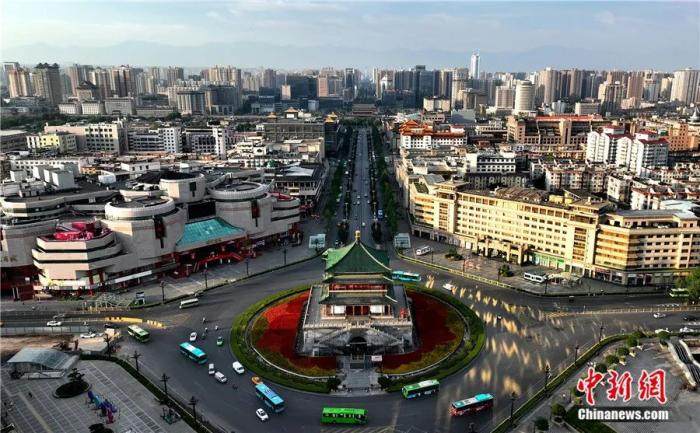 航拍晨曦中的西安市钟楼。如今,西安已成为中国古城保护与现代化发展的一个样板。视觉中国供图