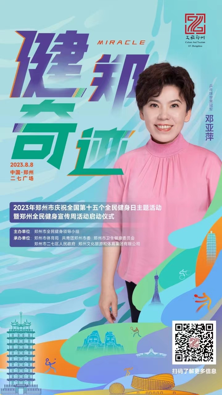 在郑州市庆祝全国第十五个“全民健身日”主题活动暨“体育宣传周”活动启动仪式即将来临之际,邓亚萍这位郑州老乡也特别发来祝福视频:“祝大家越健身,越快乐!让我们‘健郑奇迹’,一起追寻发光之夜!”