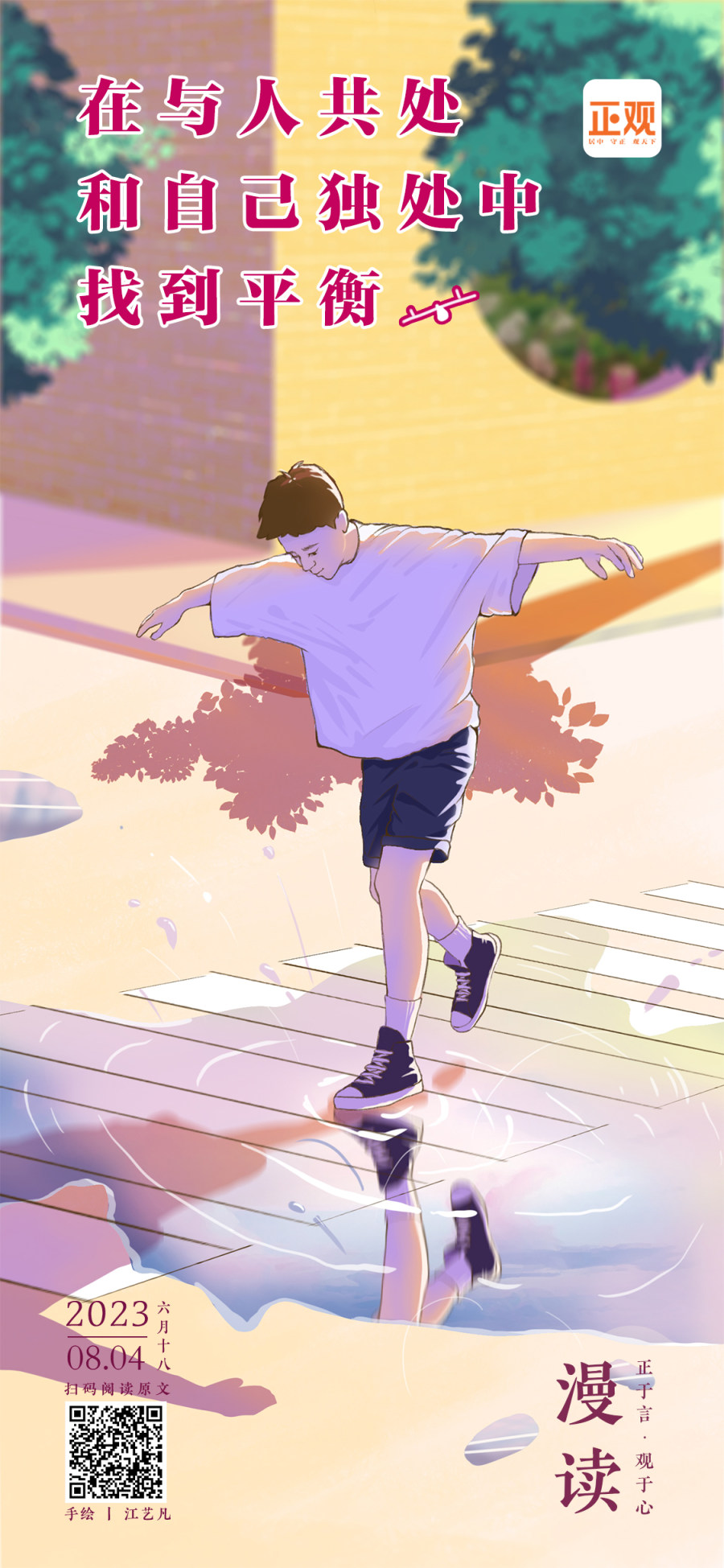 在日常的生活节奏里,我基本上能够轻松地平衡与人共处和自己独处之间的关系。一个星期当中,大部分时间我是独处的,但周末会和一群亲戚朋友们相聚。热闹够了之后,新的一周又到来了。星期一上午我在没有他人的屋子里走动,听着空阔温柔的寂静之声,让自己沉浸式嵌入孤独之中。回到只属于自己的安乐窝,我找到了自己,并走向成熟。