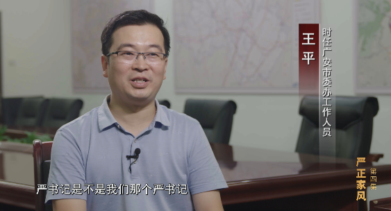 时任四川省广安市委办工作人员 王平:严书记是不是我们那个严书记?其实当时我就有一点怀疑,因为我大概知道他家里面的情况。