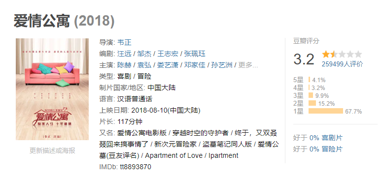 《爱情公寓》大电影在豆瓣上仅有3.2分,是该系列至今最低评分