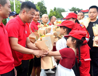 8月5日傍晚,在郑州柳林收费站,空地上站满了捧着鲜花的人,他们张望着,“热烈欢迎赴冀救援英雄凯旋”,高速出口处电子屏上的一行红色大字十分醒目。不久后,一辆辆救援车映入眼帘,人们迎了上来,为凯旋的救援队员们献花。