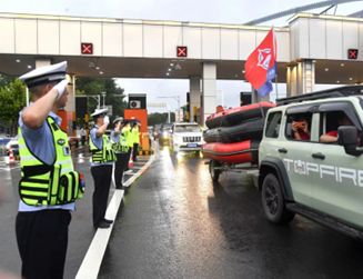 “敬礼!”交警队伍齐刷刷敬了个礼,对回郑的15支驰援河北涿州的郑州救援队表示敬意。
