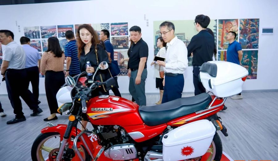 这块300平方米左右的展厅,以老亚细亚商场引爆的中原商战为主题,分为人物、事件、文化、环境4个篇章,通过近80张老照片,以及制服、帽子、书刊等实物,系统展示了老亚细亚曾经的峥嵘岁月。其中最抢眼的,是一辆贴着野太阳标识的铃木125摩托车。想当年,这就是亚细亚摩托车仪仗队小姐的坐骑。