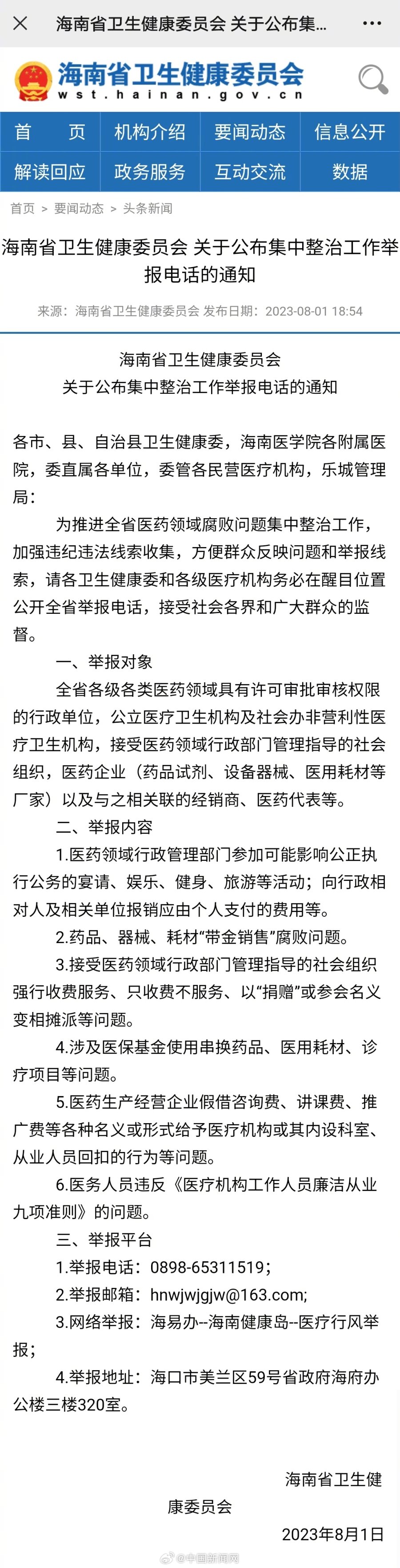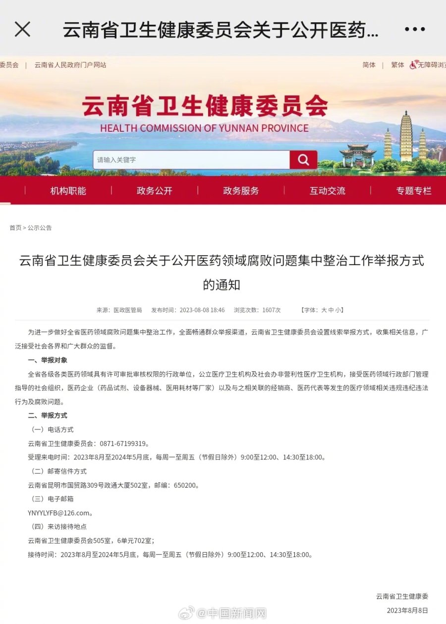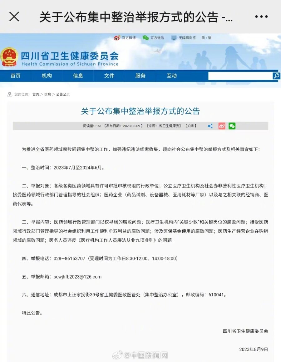 近日,全国医药领域腐败问题集中整治的话题持续引发热议。北京、重庆、海南、云南、四川等多地公布集中整治举报方式。