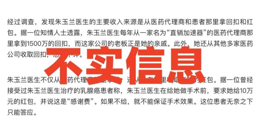 8月10日下午,常州市广播电视台微信公众号“中吴网”发文辟谣“乳腺外科医师朱某某相关谣言”。