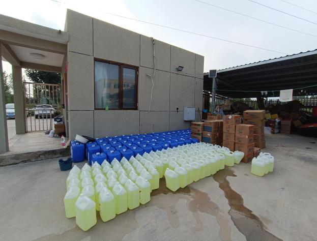 几辆满载社会捐赠物资的货车驶进院子,队员们有条不紊的清点接收,接力从货车上卸下一箱箱水、方便面、面包……再装车给急需物资的地点加紧运送,几十桶消毒液堆放在大门旁正等待使用。虽然洪水多已消退,但运送物资和灾后清淤、消杀等工作仍刻不容缓。