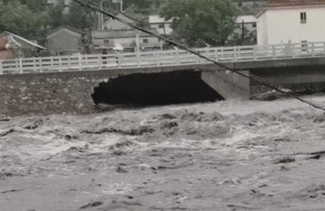 等到绕过桥,队员们回头注意到桥中间的桥墩上被冲出了一个大洞,随时可能有倾斜坍塌的风险。为了提醒疏散过路的车辆与行人,商量后王宏春、刘建民等6名队员留在了桥边协助路政人员进行警示,陈海军则带着其他9名队员继续向求援人员所在的村子进发。