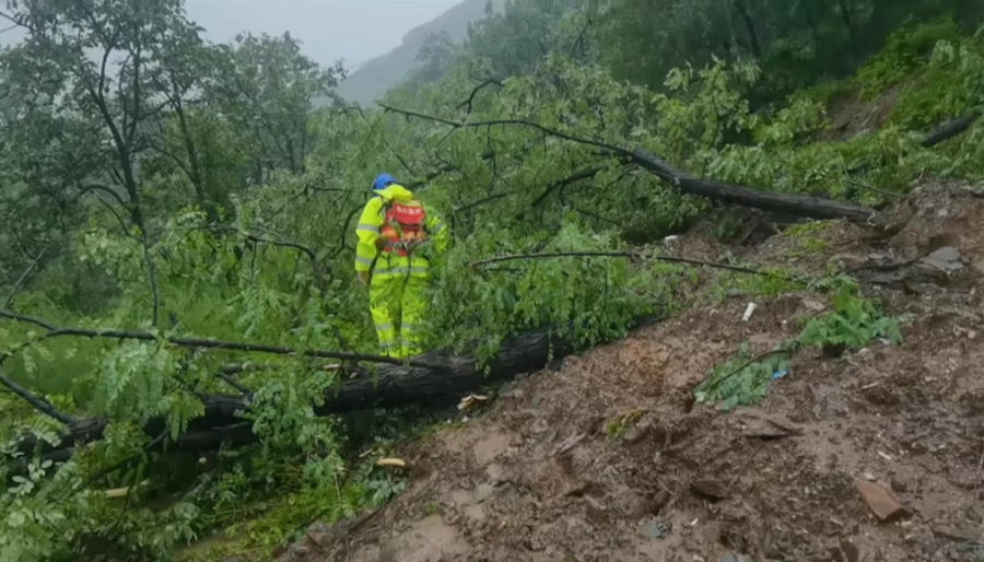 “河水把进村的路也给封了,过不去,只能绕山路”,陈海军说。从记录现场的视频里,可以窥见他们徒步三公里山路进入白草洼村救援中一些片段。