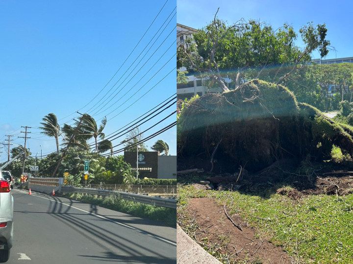 同样,小万在毛伊岛西北部的丽思卡尔顿酒店遭遇停电。她早上出门,她看到警察正在封路,路边很多电线杆被风吹倒,大树甚至被连根拔起。此外,很多人在超市门口排队囤食物。直到8日下午四点多,手机显示没信号。