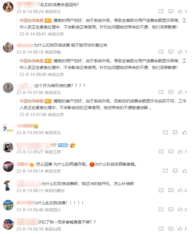 中国电信回应多扣费:系统升级导致,正紧急处理