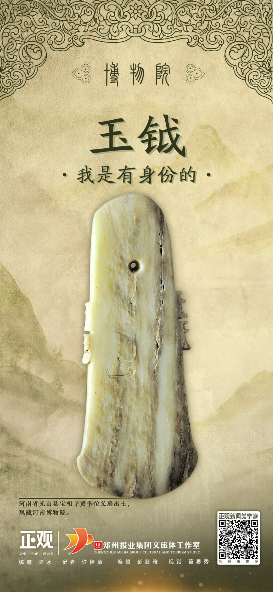 据河南博物院文博馆员梁爽介绍,不同时期,钺的功能也不尽相同。玉钺作为随葬器,首先是一种礼仪器,是军事权力的象征物。后来制作精美的玉钺,还充当祭祀的职能,象征着持有者的神圣地位。