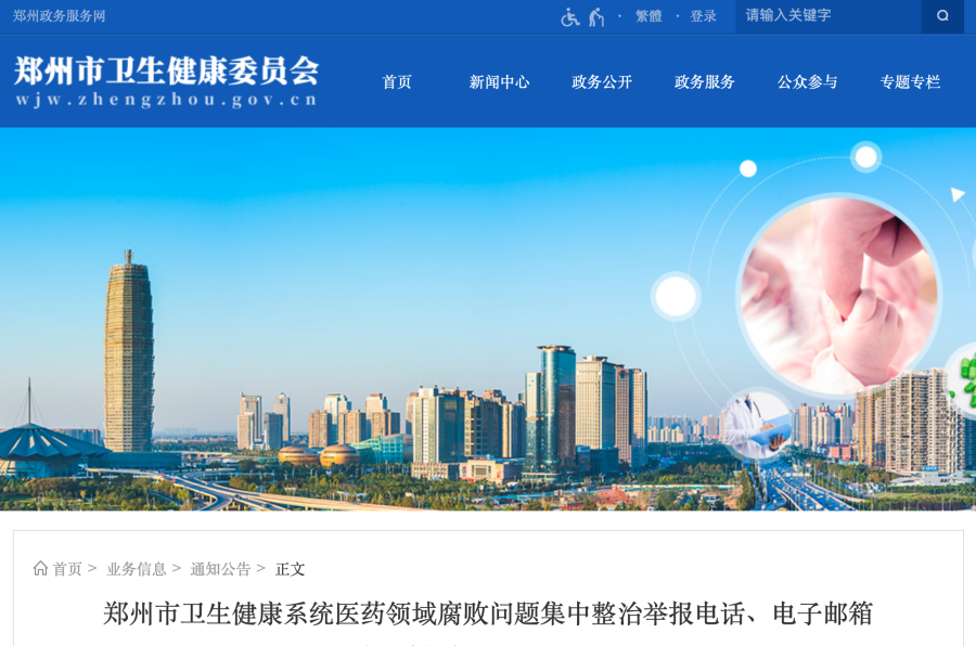 为扎实做好郑州市卫生健康系统医药领域腐败问题集中整治工作,现将集中整治期间(2023年7月—2024年6月)的举报电话、电子邮箱予以公布: