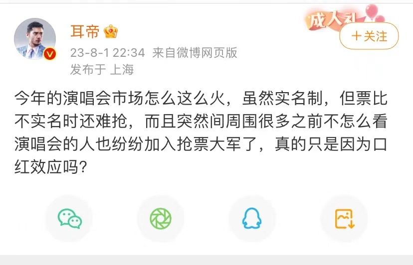 从售票情况来说,今年就没有不好卖的演唱会。即便是在普通人眼里属于“到底谁会去看”的歌手,也能创造很快售罄的记录。就连知名乐评人耳帝也在微博上发出感慨,“之前不怎么看演唱会的人也纷纷加入抢票大军了。”