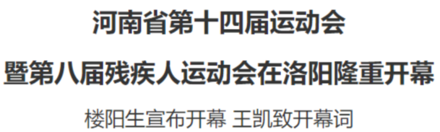 河南省第十四届运动会暨第八届残疾人运动会在洛阳隆重开幕