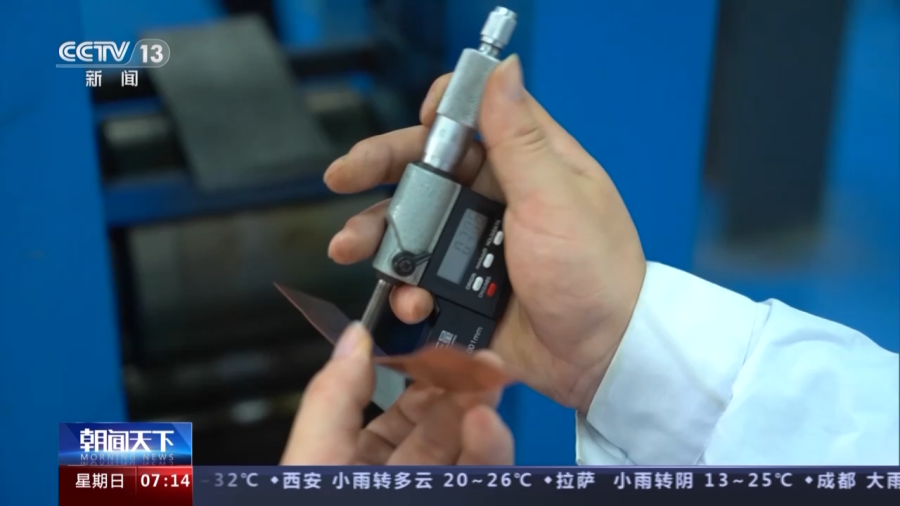 他们生产出的软态箔,曾被用到了中国空间站“天和”核心舱的太阳翼上,填补了国内压延铜箔在航空航天领域的空白。