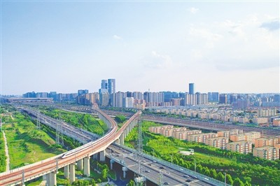 完善郑州与周边城市“3+3+4”快速交通系统,即郑州与周边城市不少于3条铁路、3条高速公路、4条国省干线道路。推动高速铁路、普速铁路、城际铁路、市域铁路、城市轨道交通“五网融合”。截至目前,郑州“米”字形高铁网基本建成,新郑机场至郑州南站城际铁路已开通运营,郑许市域铁路工程(郑州段)通过竣工验收,郑开、郑焦、郑机城际开行车次进一步加密,机西高速二期、开港大道、许港大道等一批城际快速通道相继建成。