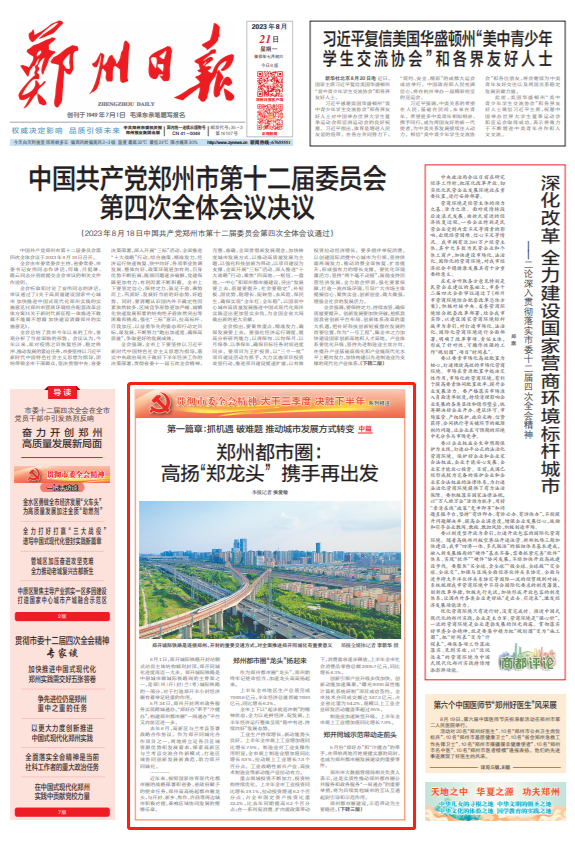 8月18日召开的市委十二届四次全会强调,全市上下要坚持完整、准确、全面贯彻新发展理念,加快转变城市发展方式,以推动高质量发展为主题,以强化科技创新为带动,以项目建设为支撑,全面开展“三标”活动、深入推进“十大战略”行动,聚焦“四高地、一枢纽、一重地、一中心”和郑州都市圈建设,突出“发展要上去、质量要提升、社会要稳定”,补短板、固优势,稳增长、促转型,去风险、保民生,确保实现“全年红、全年稳”。