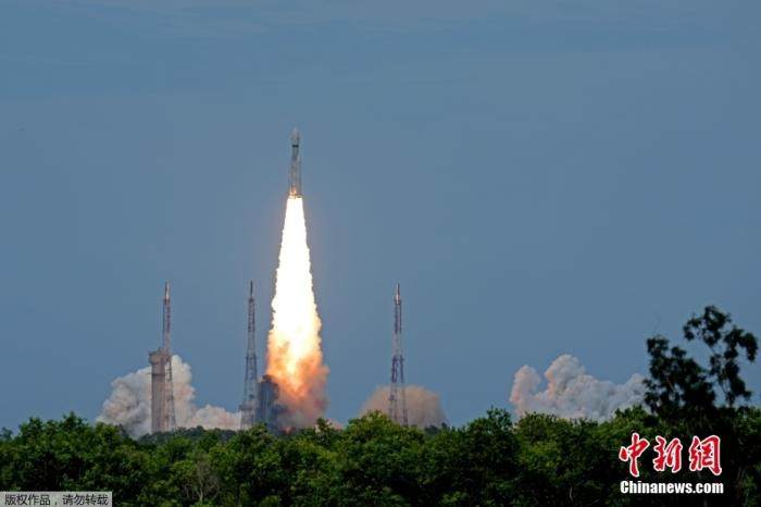 当地时间7月14日,“月船3号”在印度安得拉邦斯里哈里科塔(Sriharikota)航天中心发射升空。