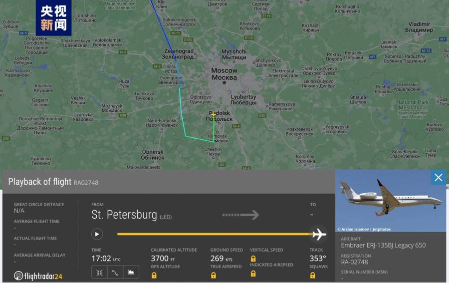 根据Flight Radar24显示的画面,所属于普里戈任的另一架飞机原本在失事飞机后起飞,但后来在莫斯科上空调头返往机场。有消息称,普里戈任擅长迷惑他人,他可能使用个人信息在失事飞机上值机,但乘坐的是另一架飞机。