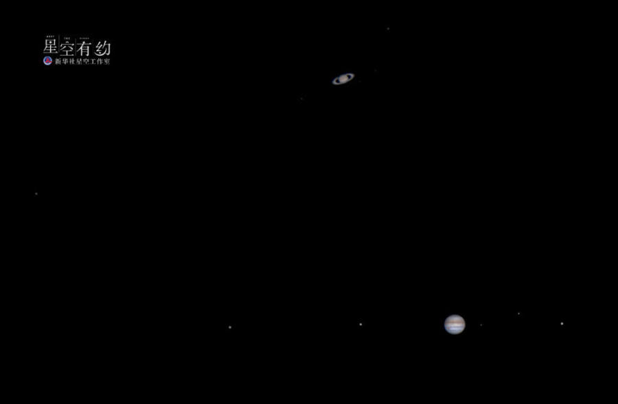 北京市天文摄影爱好者宗海阳2020年12月21日通过天文望远镜拍摄到的土星(上)合木星(下)。(本人供图)