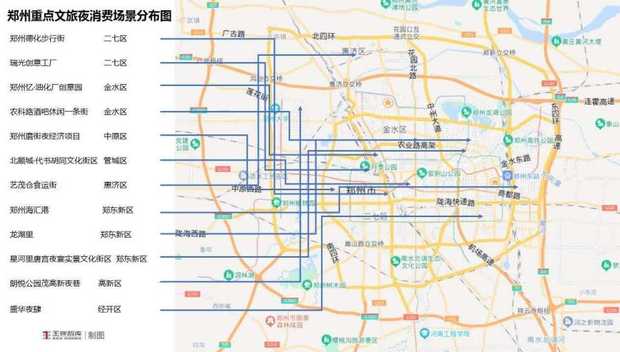按照部署,2023年,全市将重点打造郑州德化步行街、瑞光创意工厂、郑州记忆·油化厂创意街区、农科路酒吧休闲一条街、郑州磨街、北顺城·代书胡同文化街区、艺茂仓食运街、郑州海汇港、龙湖里、星河里唐宫夜宴实景文化主体街区、朗悦公园茂高新夜巷、盛华夜肆、欢乐金街、溪上露营地、登封大禹城、巩义竹林风情古镇、新密喜悦龙虾城、新郑西泰山千稼集民俗文化街、荥阳忆江南旅游度假区、中牟逛吃公园20个文旅夜消费场景。