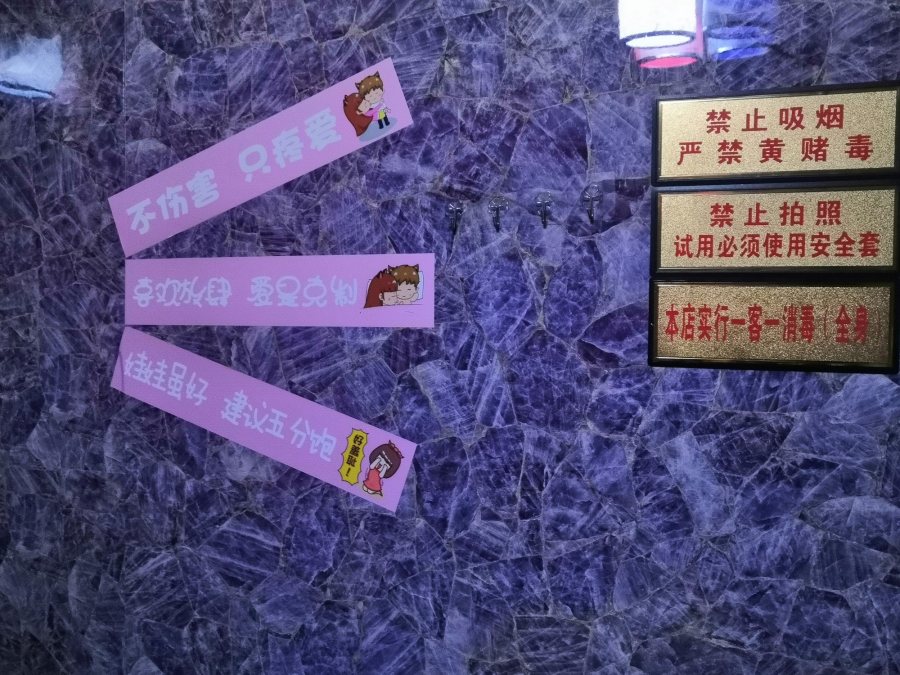 尽管“爱爱乐”似乎成为了底层打工者的发泄欲望的“伊甸园”,但仍面临各式各样的管控。有警察来店里巡逻,但因为并没有禁止经营的理由,只是关上了店面招牌的灯,就走了。