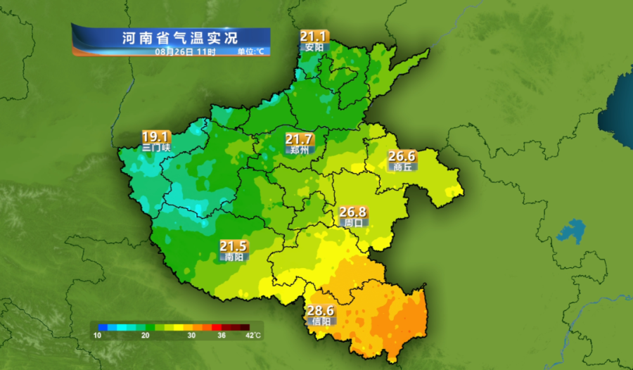 今天下午到夜里,全省阴天有中到大雨,安阳西部、新乡西部、焦作、济源、三门峡北部、洛阳东部、郑州、开封、商丘西部、平顶山、许昌、漯河、周口西部、南阳、驻马店北部有暴雨,其中郑州西南部、周口北部、许昌、漯河北部、平顶山南部、南阳北部部分县市有大暴雨并伴有短时强降水、雷暴大风等强对流天气。