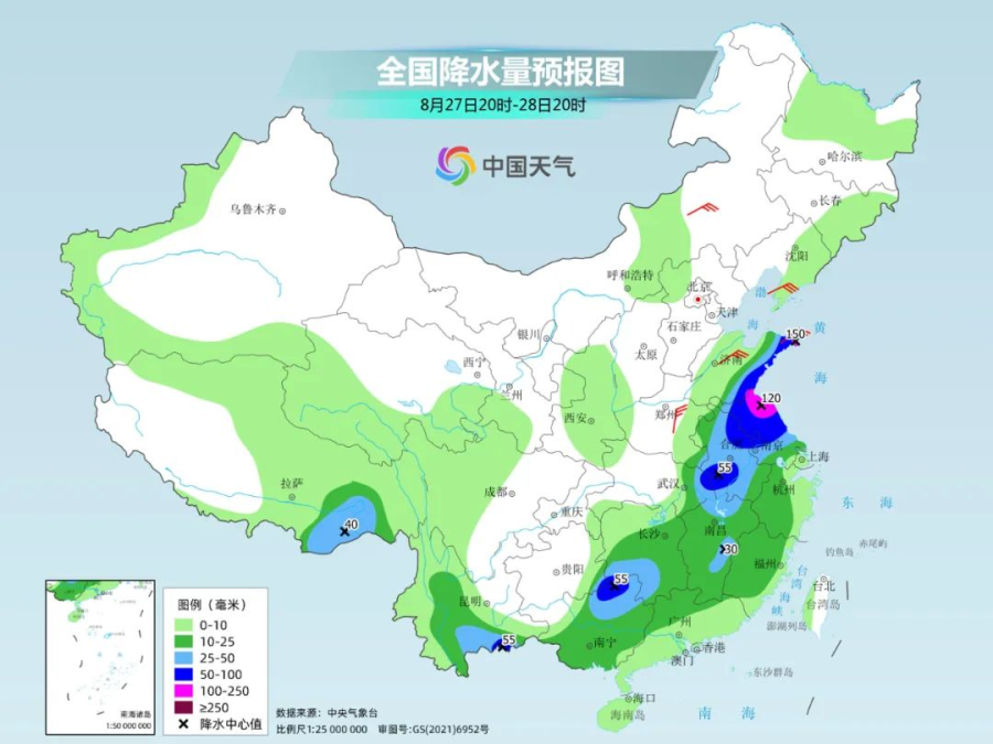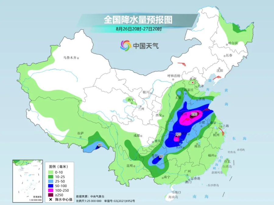 中央气象台预计,26日夜间至28日,山西东南部、河北南部、河南、山东东部和南部、安徽、江苏、湖北、贵州、湖南、江西、广西等地有大到暴雨,部分地区有大暴雨、局地特大暴雨,上述地区并伴有短时强降水、雷暴大风或冰雹等强对流天气。