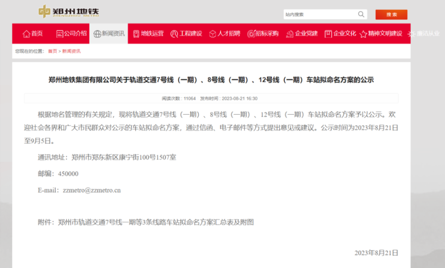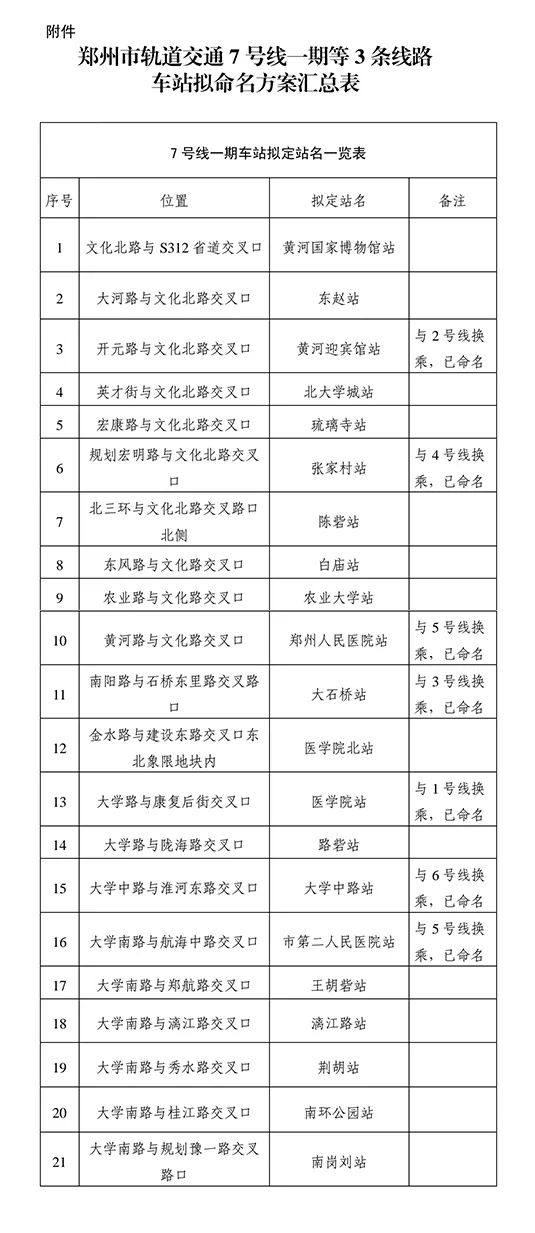 近日,郑州地铁官网根据地名管理有关规定,针对轨道交通7号线(一期)、8号线(一期)、12号线(一期)车站拟命名方案予以公示,详细如下。