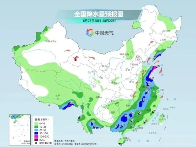25日8时至今晨8时,湖北、湖南等局地累计雨量超过250毫米。